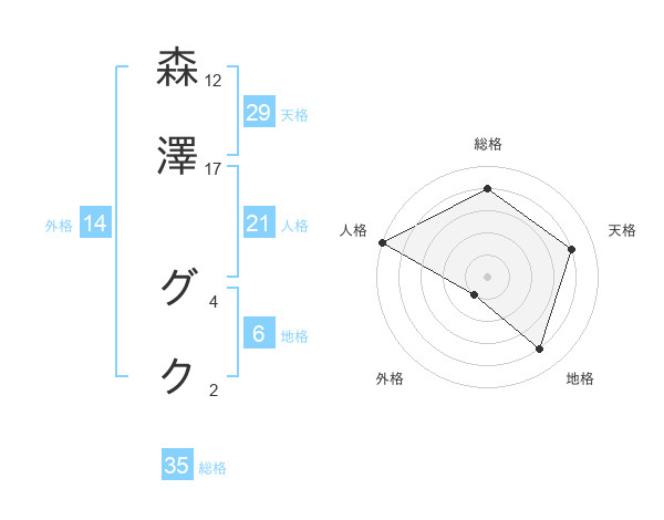 森澤 グクさんの総格は35画の4点!