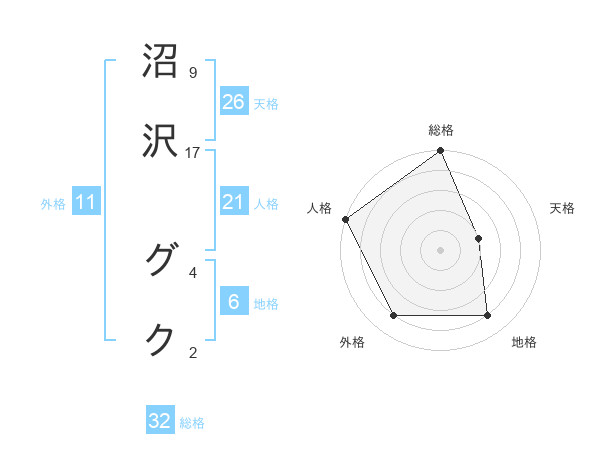 沼沢 グクさんの天格は26画の2点!