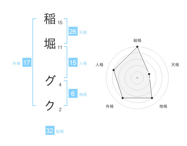 稲堀 グクさんを姓名の画数から五運を鑑定