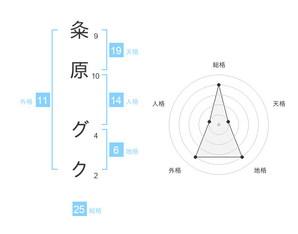 粂原 グクさんの総格は25画の4点!