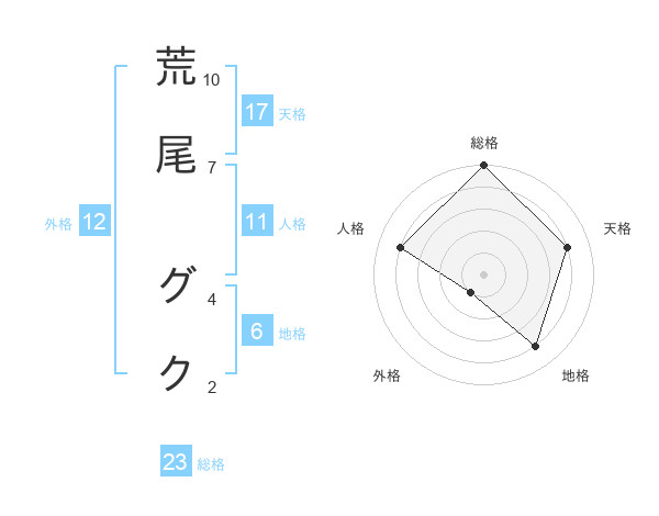 荒尾 グクさんの天格は17画の4点!