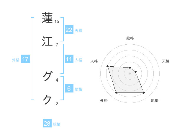 蓮江 グクさんの天格は22画の1点!
