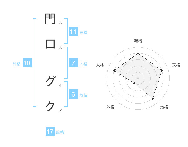 門口 グクさんの天格は11画の4点!