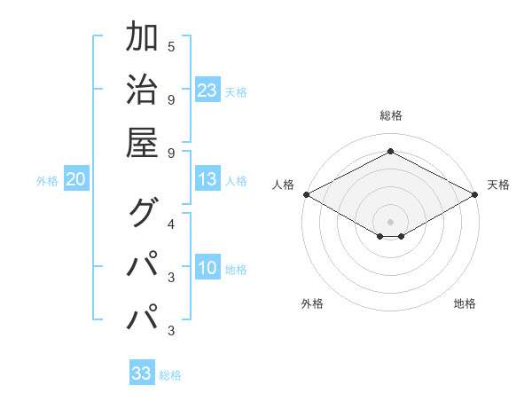 加治屋 グパパさんを姓名の画数から五運を鑑定