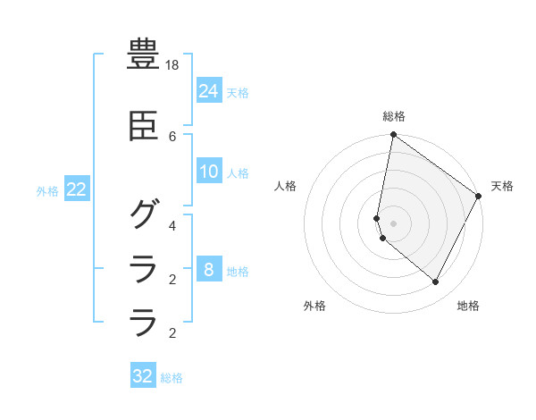 豊臣 グララさんの総格は32画の5点!