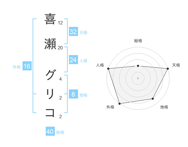 喜瀬 グリコさんの天格は32画の5点!