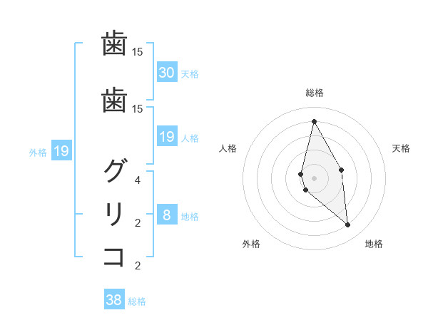 歯歯 グリコさんの総格は38画の4点!
