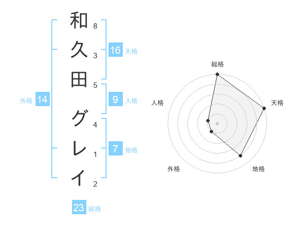 和久田 グレイさんを姓名の画数から五運を鑑定