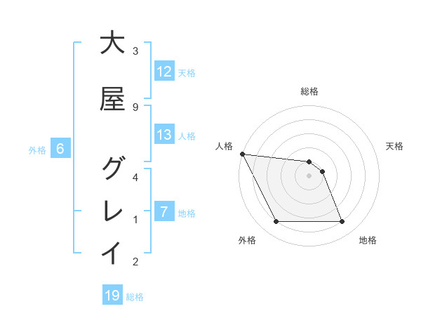 大屋 グレイさんの天格は12画の1点!