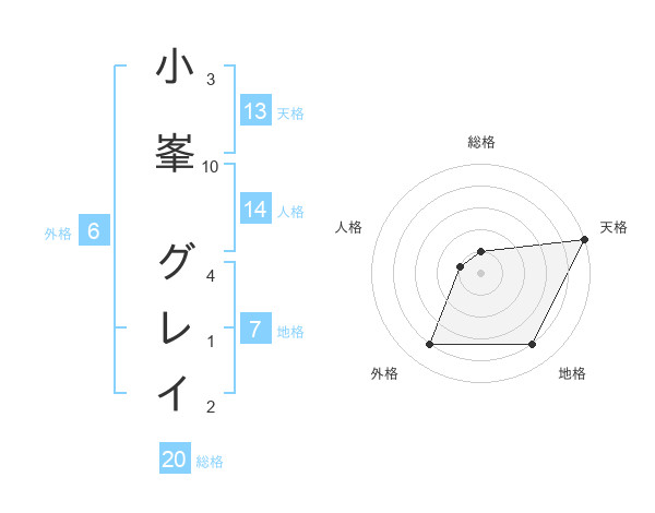 小峯 グレイさんの天格は13画の5点!