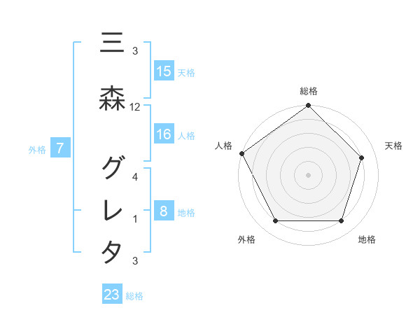 三森 グレタさんの総格は23画の5点