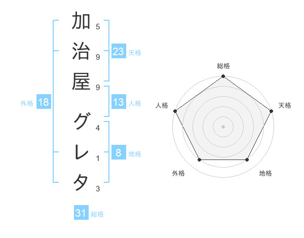 加治屋 グレタさんの天格は23画の5点