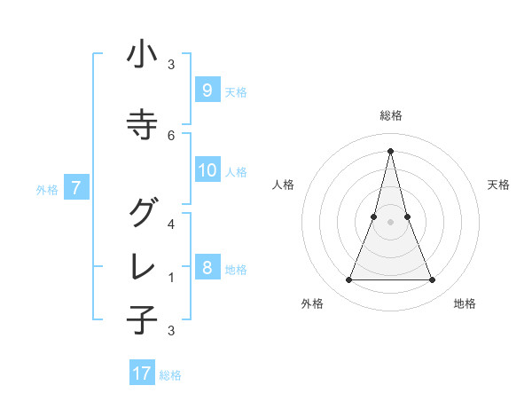 小寺 グレ子さんの総格は17画の4点!