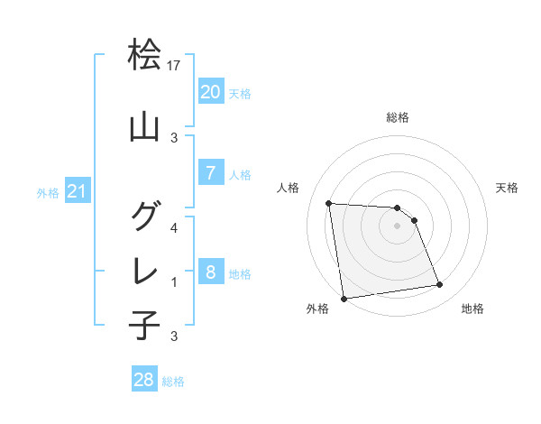桧山 グレ子さんを姓名の画数から五運を鑑定