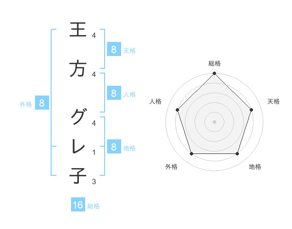王方 グレ子さんを姓名の画数から五運を鑑定
