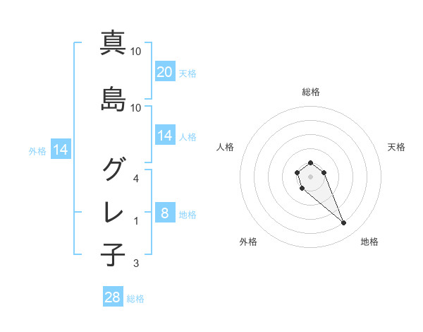 真島 グレ子さんを姓名の画数から五運を鑑定