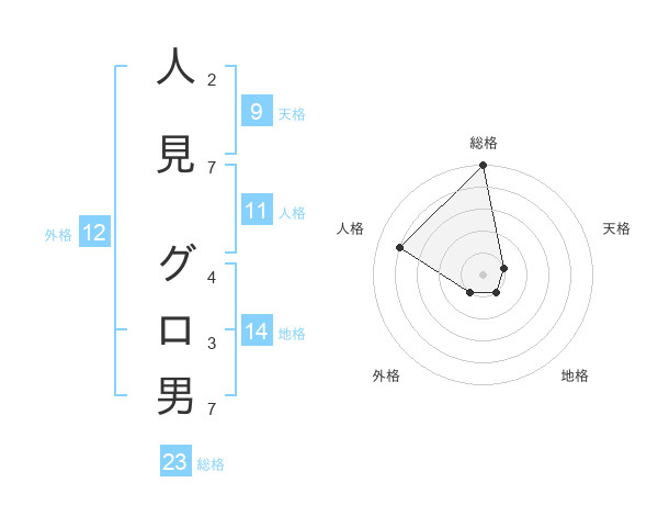 人見 グロ男さんの総格は23画の5点!
