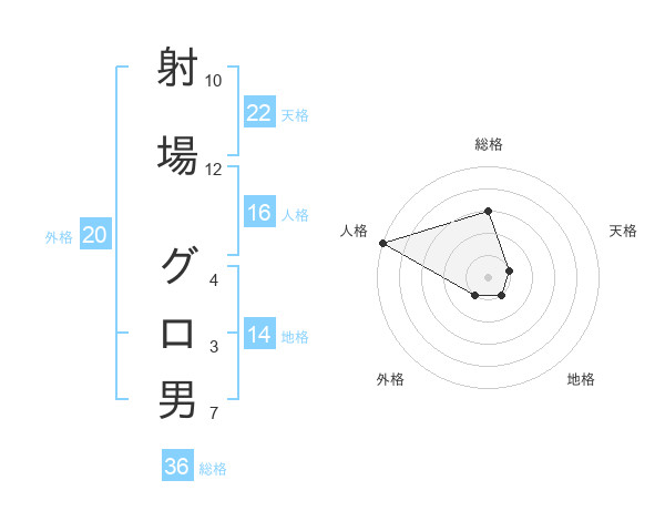 射場 グロ男さんの地格は14画の1点!