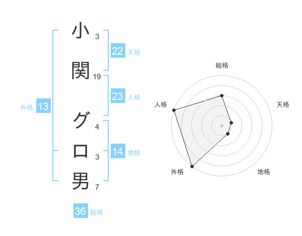小関 グロ男さんを姓名の画数から五運を鑑定