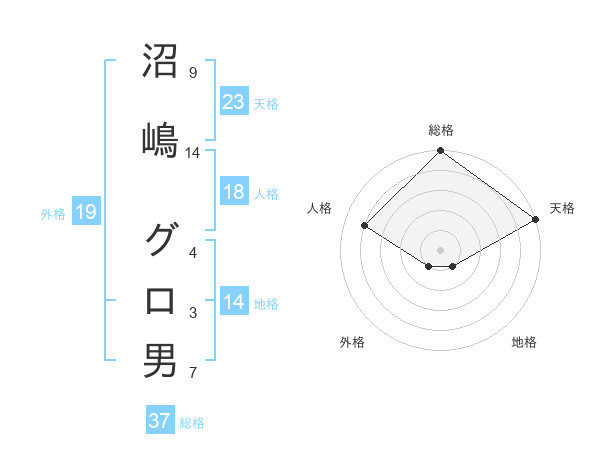 沼嶋 グロ男さんを姓名の画数から五運を鑑定