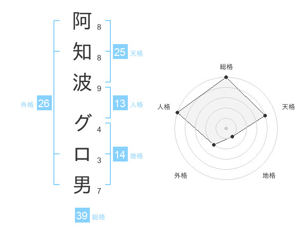 阿知波 グロ男さんを姓名の画数から五運を鑑定