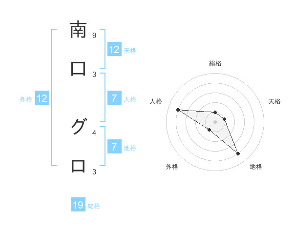 南口 グロさんの総格は19画の1点!