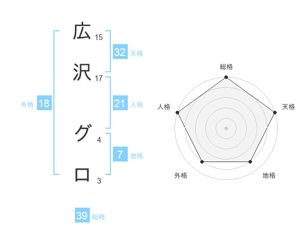 広沢 グロさんの総格は39画の5点!