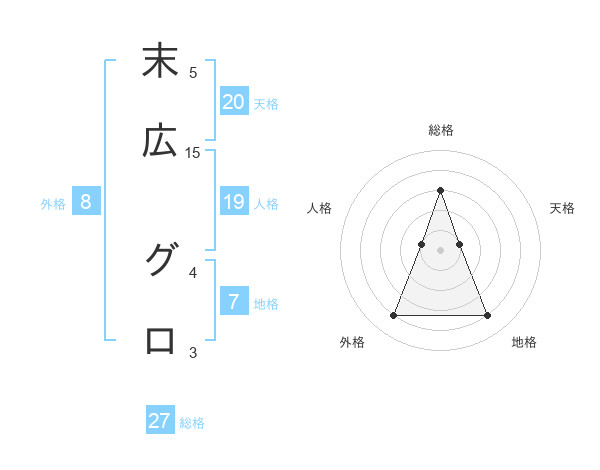 末広 グロさんの総格は27画の3点!