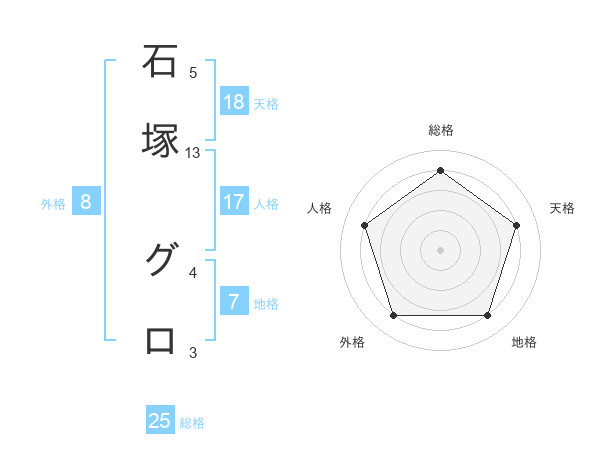 石塚 グロさんを姓名の画数から五運を鑑定