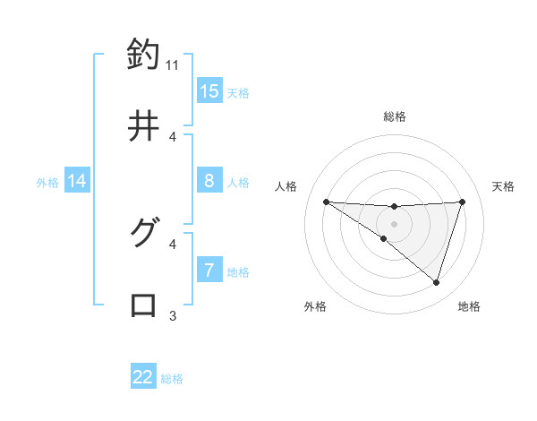 釣井 グロさんの天格は15画の4点!