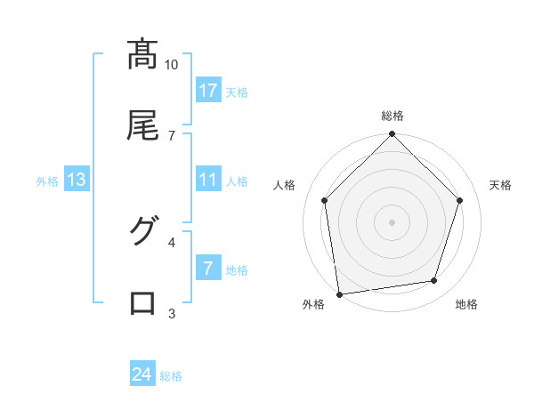 髙尾 グロさんを姓名の画数から五運を鑑定