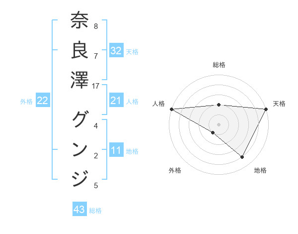 奈良澤 グンジさんを姓名の画数から五運を鑑定