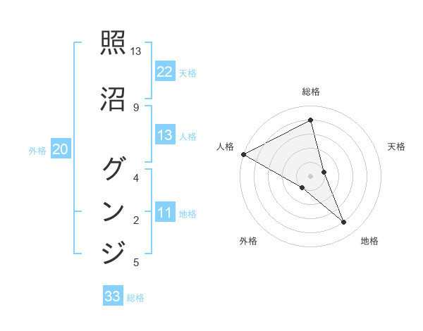 照沼 グンジさんを姓名の画数から五運を鑑定