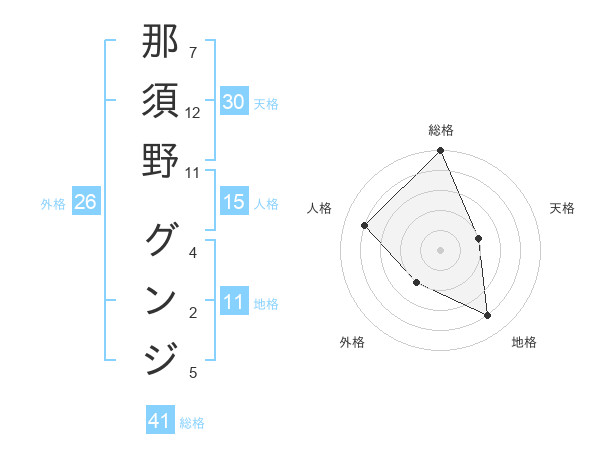 那須野 グンジさんの総格は41画の5点!