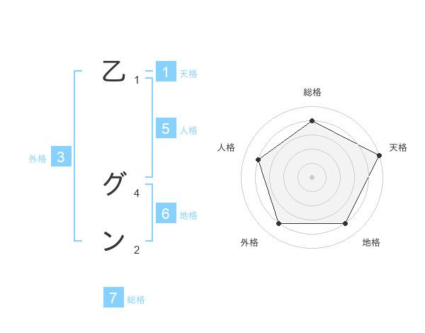 乙 グンさんの総格は7画の4点!