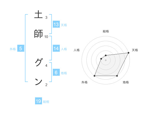土師 グンさんの天格は13画の5点!