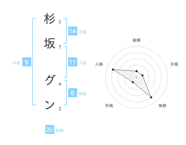 杉坂 グンさんの総格は20画の1点!