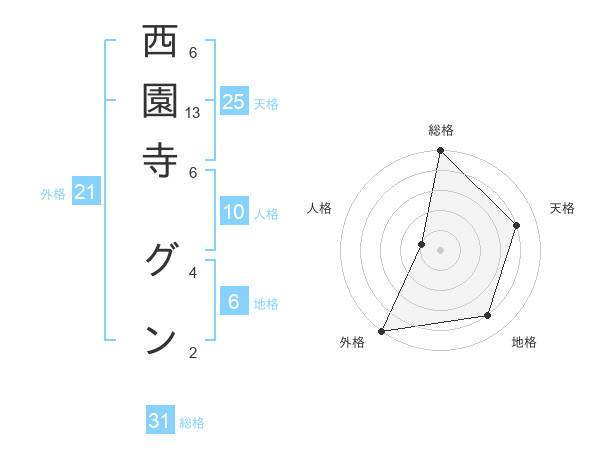 西園寺 グンさんを姓名の画数から五運を鑑定