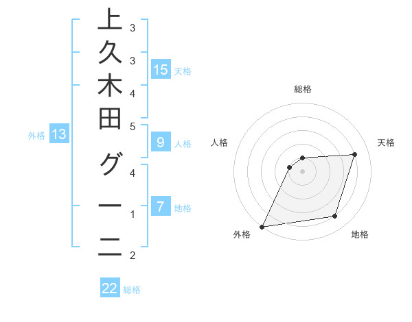 上久木田 グー二さんを姓名の画数から五運を鑑定
