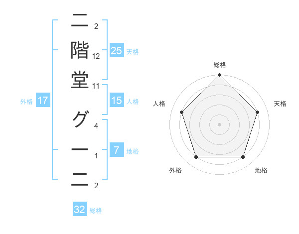二階堂 グー二さんを姓名の画数から五運を鑑定
