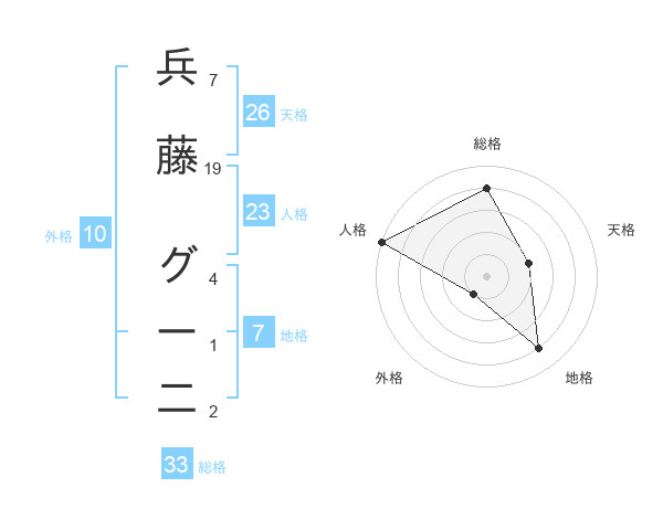 兵藤 グー二さんを姓名の画数から五運を鑑定