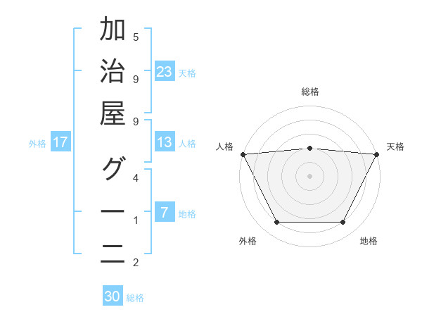 加治屋 グー二さんを姓名の画数から五運を鑑定