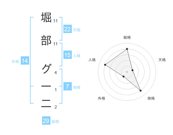 堀部 グー二さんを姓名の画数から五運を鑑定