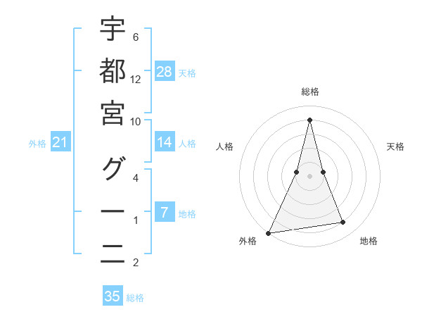 宇都宮 グー二さんを姓名の画数から五運を鑑定