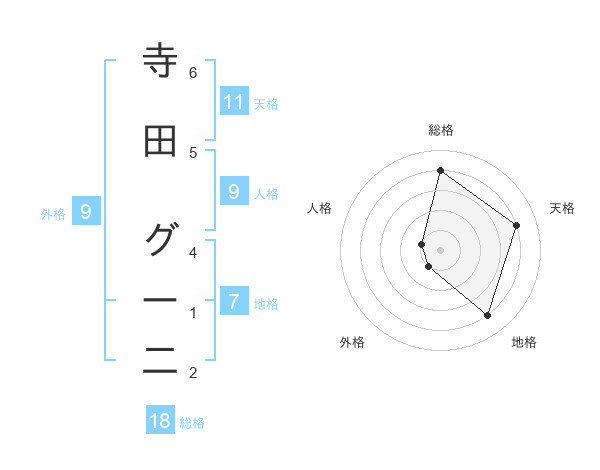寺田 グー二さんを姓名の画数から五運を鑑定