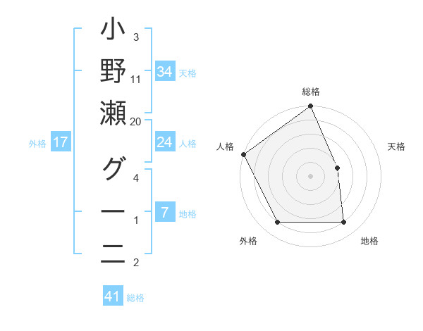 小野瀬 グー二さんを姓名の画数から五運を鑑定