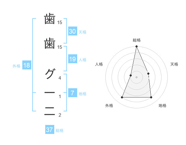 歯歯 グー二さんを姓名の画数から五運を鑑定