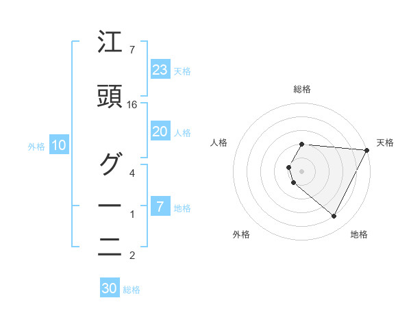 江頭 グー二さんを姓名の画数から五運を鑑定