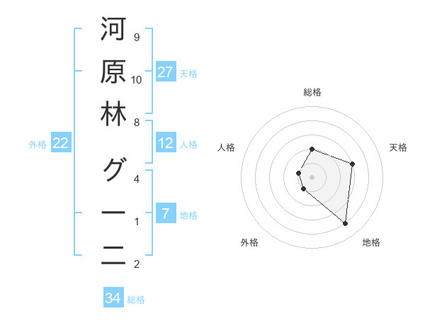河原林 グー二さんの総格は34画の2点!