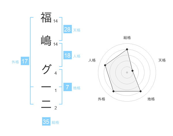 福嶋 グー二さんを姓名の画数から五運を鑑定